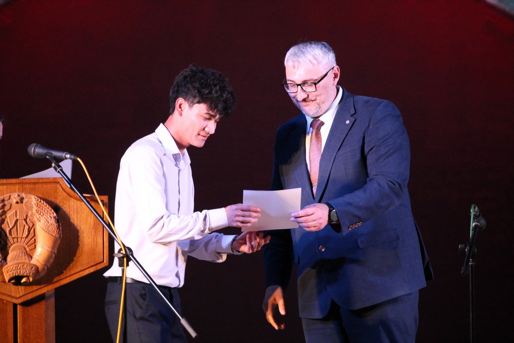 В торжественной части вечера декан факультета истории и межкультурных коммуникаций Станислав Черепко вручил грамоты лучшим студентам, отметив их достижения и вклад в жизнь университета.