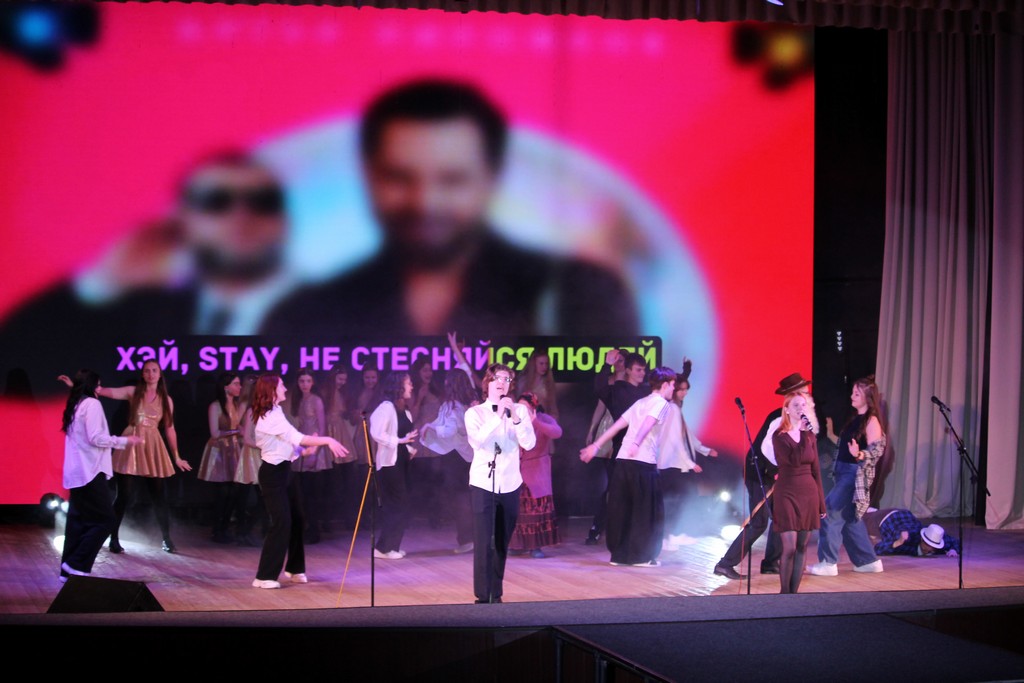 В программе концерта были представлены вокальные и танцевальные номера, театральные зарисовки, а также викторина на общие знания. Участниками мини-квиза стали команды выпускников и преподавателей факультета. Приятным сюрпризом для зрителей стало выступление выпускника ГГУ, стендап-комика Евгения Буракевича.