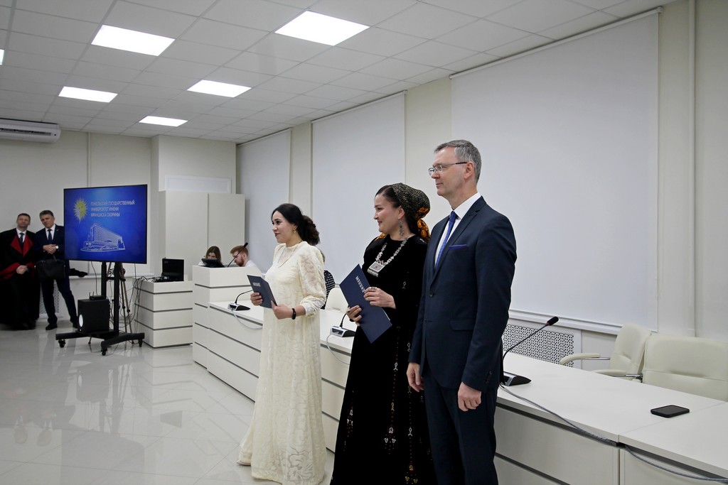 Дипломы об окончании высшего учебного заведения были также вручены иностранным студентам.