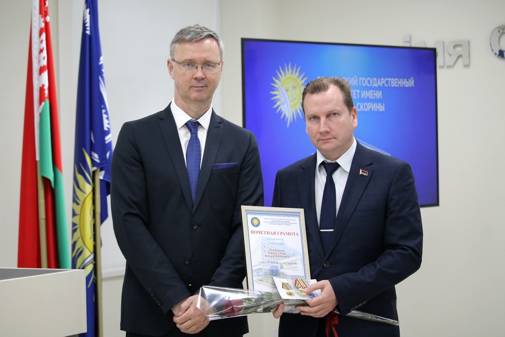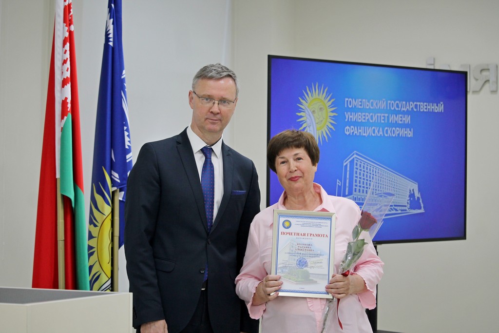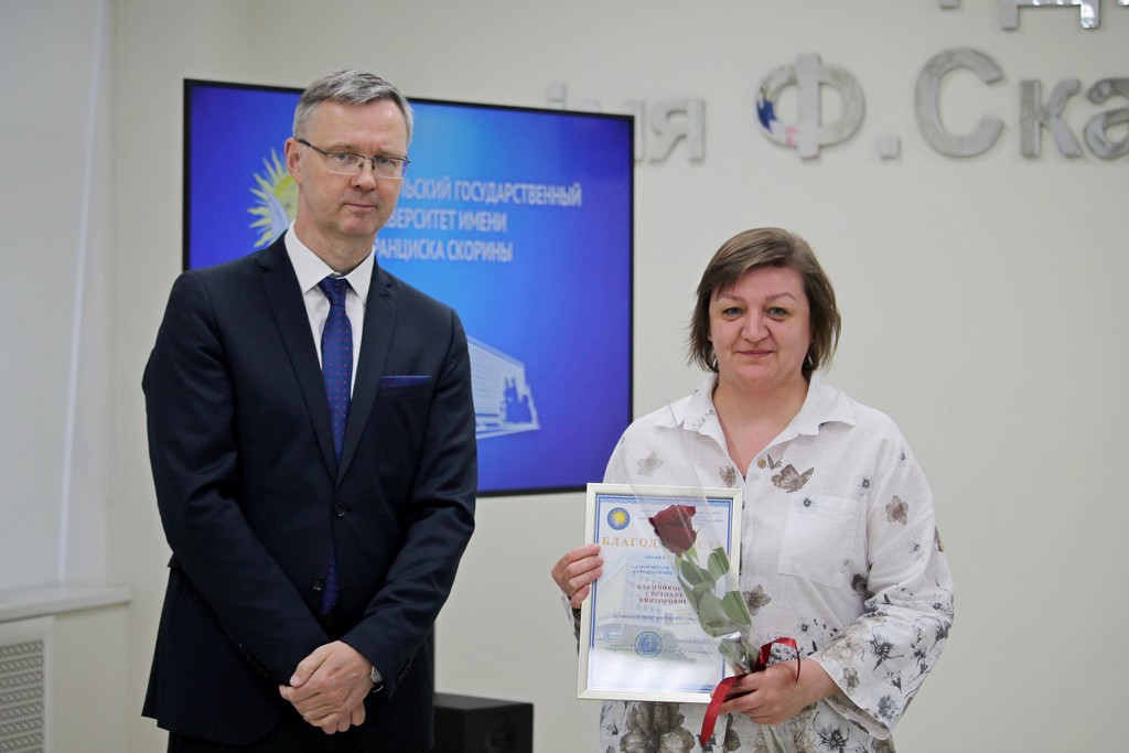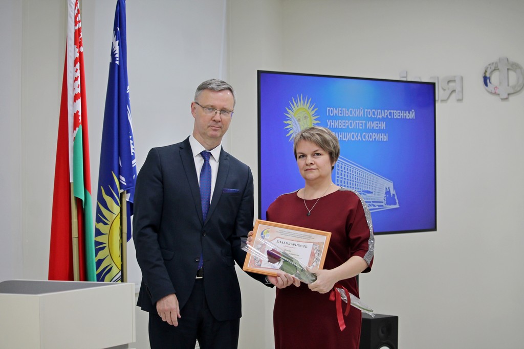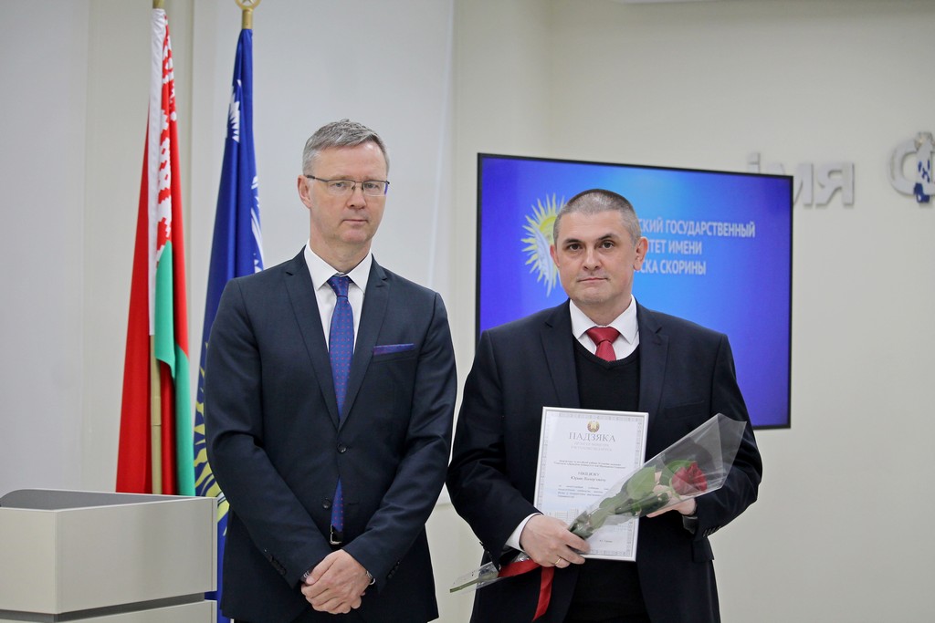 Ректор ГГУ имени Ф. Скорины Сергей Хахомов вручил награды преподавателям и сотрудникам университета. На заседании были подведены итоги воспитательной, научной и учебно-методической деятельности факультетов и кафедр за 2024–2025 учебный год. В числе лучших –факультет психологии и педагогики; среди кафедр первое место заняла кафедра оптики, второе – кафедра социальной и педагогической психологии, третье – кафедра химии. Кроме того, подведены итоги конкурса на лучший учебник или учебное пособие, подготовленное преподавателями вуза.