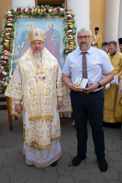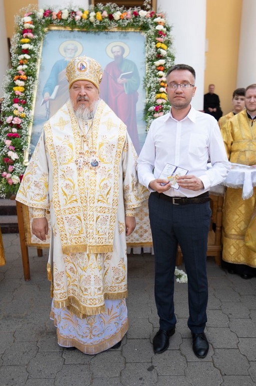 День памяти святых апостолов Петра и Павла – один из важнейших православных праздников, который ежегодно отмечается 12 июля. В этом году все церковные мероприятия в Гомельской епархии проходят под знаком 100-летия её образования. Богослужение возглавил высокопреосвященнейший Стефан, архиепископ Гомельский и Жлобинский. Пришедшие на праздничные торжества совершили Крестный ход вокруг собора, который стал выражением православной веры и благочестия, воззванием к обществу о значении мира и добра на планете. На торжестве также состоялось вручение церковных наград тем, кто многолетним добросовестным трудом содействует устроению епархиальной жизни и развитию церковно-общественного служения, исследованием истории Православной церкви на Гомельщине. Медали праведного Иоанна Кормянского были удостоены и сотрудники Гомельского государственного университета имени Франциска Скорины – декан факультета истории и межкультурных коммуникаций С. А. Черепко и заведующий кафедрой философии и специальных исторических дисциплин С. Ф. Веремеев.