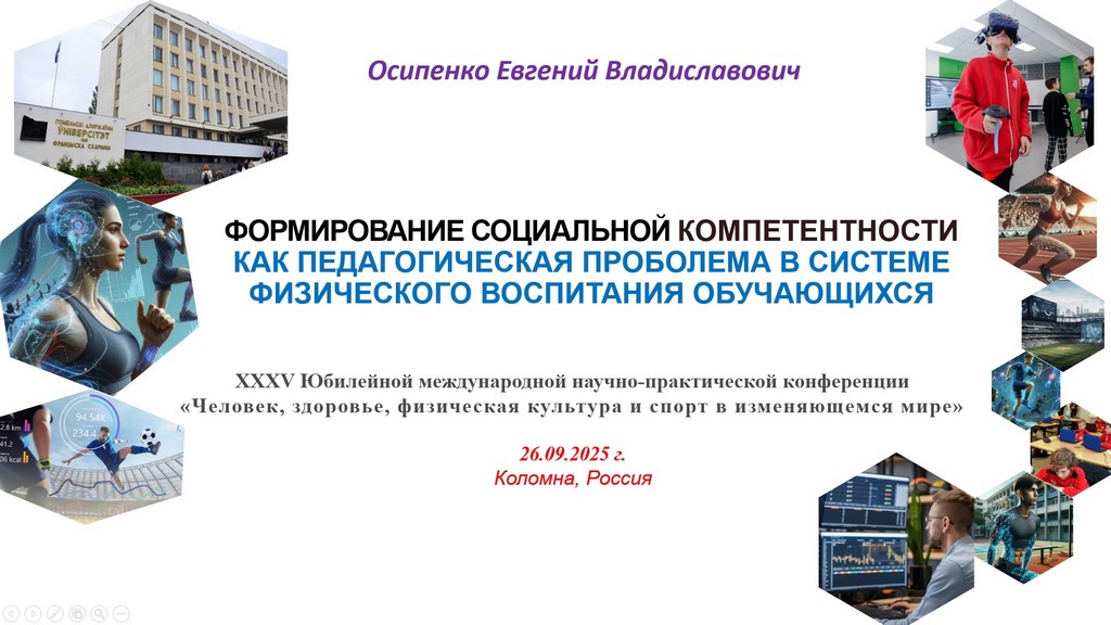 Особый интерес вызвал доклад Евгения Владиславовича Осипенко, заведующего кафедрой теории и методики физической культуры Гомельского государственного университета имени Ф. Скорины. В своём выступлении на тему «Формирование социальной компетентности как педагогическая проблема в системе физического воспитания обучающихся» он представил комплексный анализ роли физической культуры в развитии социально значимых качеств личности. В докладе были раскрыты методические аспекты формирования коммуникативных навыков, ответственности и умения работать в команде через механизмы физического воспитания, что имеет первостепенное значение для подготовки будущих педагогов.