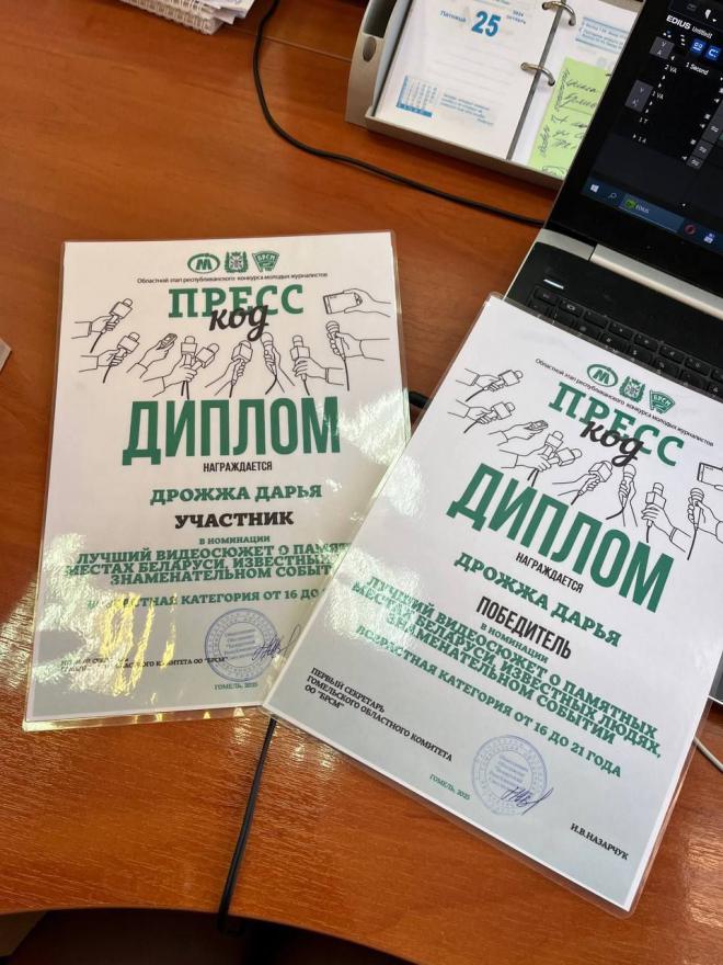 Дрожжа Дарья сняла Лучший видеосюжет о памятных местах Беларуси, известных людях, знаменательном событии.