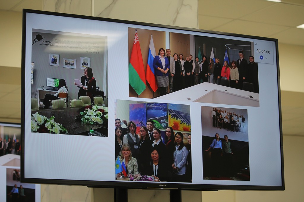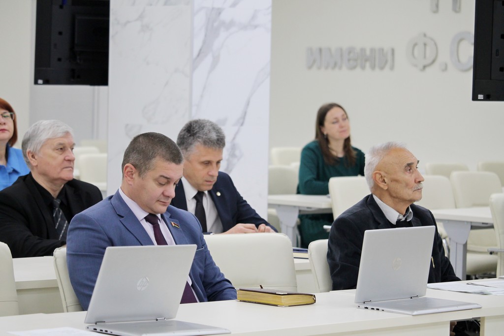 Заседание началось на торжественной ноте: партнеры и сотрудники ГГУ получили заслуженные награды из рук ректора вуза Сергея Хахомова.