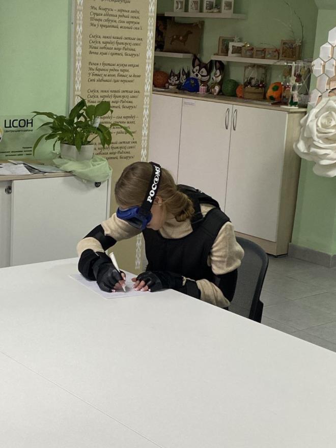В отделении социальной реабилитации, абилитации ЦСОН Центрального района г.Гомеля проведено интерактивное занятие для студентов. Инновационный костюм эмпатии GERT помог будущим психологам глубже понять и прочувствовать особенности жизни людей с ограниченными возможностями.