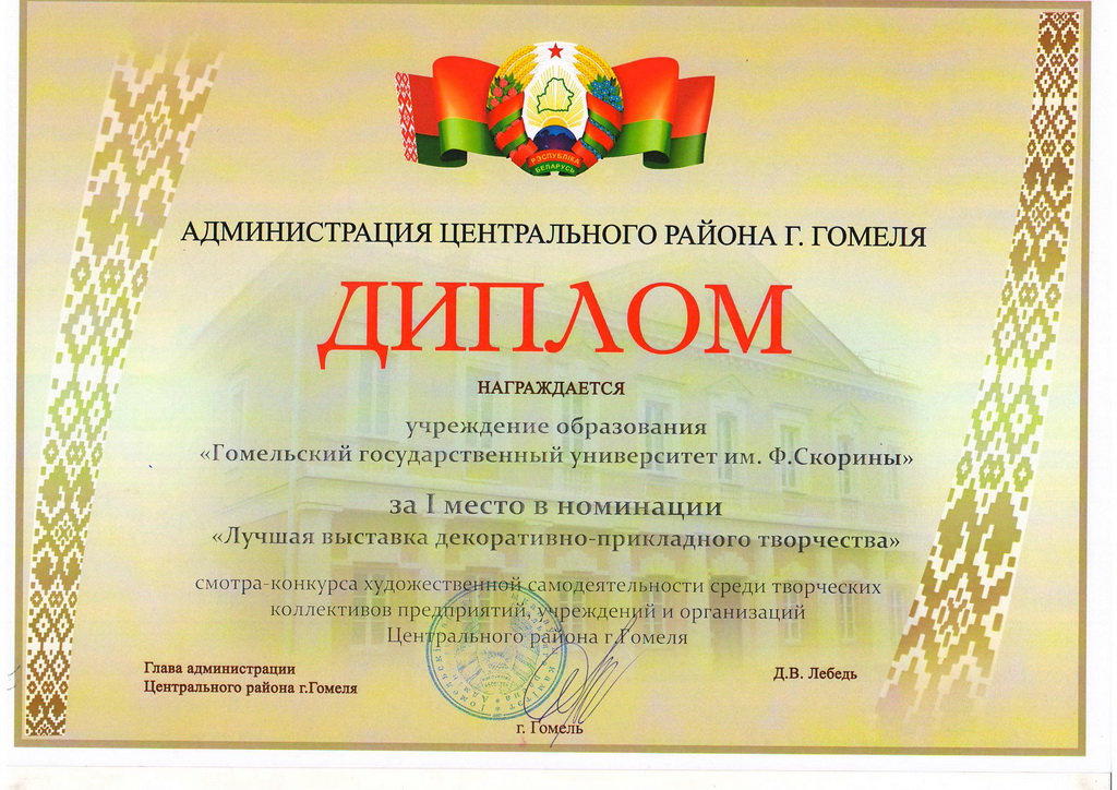 Выставка, организованная ведущим специалистом ОМИСС Людмилой Дубровской совместно с сотрудниками и преподавателями университета, была отмечена дипломом I степени в номинации «Лучшая выставка декоративно-прикладного творчества.