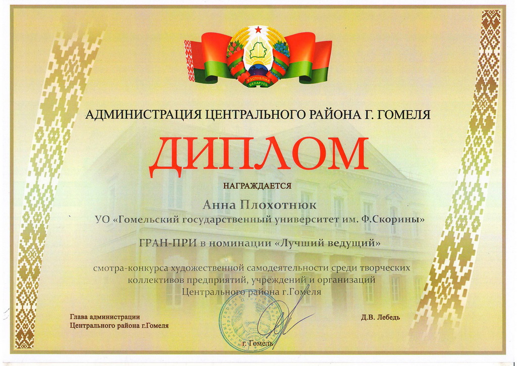 • Гран-при в номинации «Лучший ведущий» (Анна Плохотнюк).