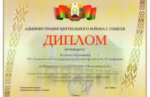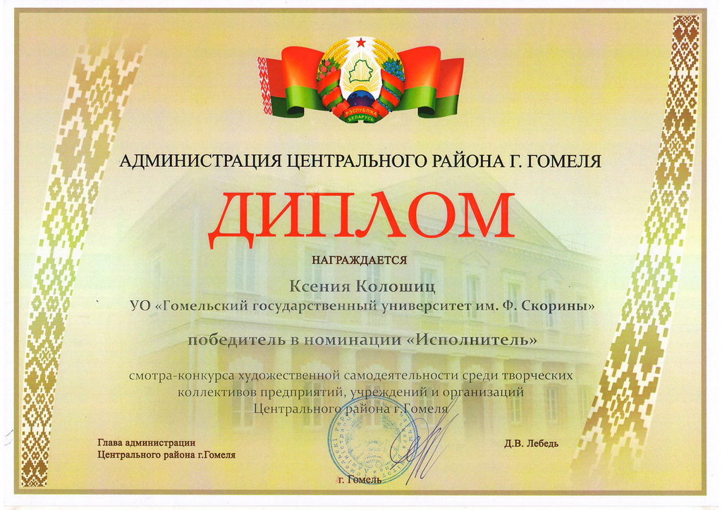 • диплом победителя в номинации «Исполнитель» (Ксения Колошиц);