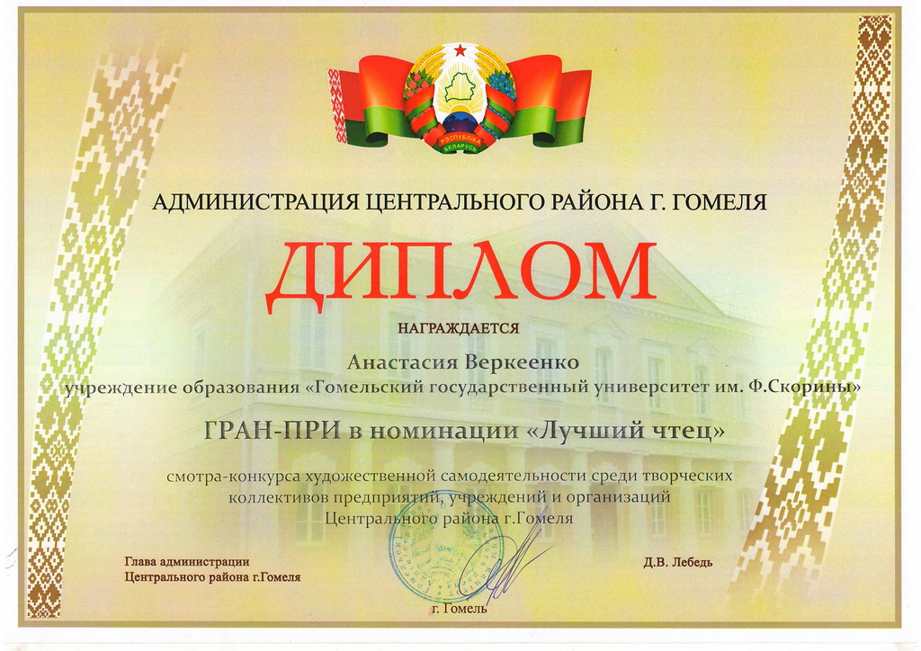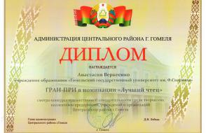 • Гран-при в номинации «Лучший чтец» (Анастасия Веркеенко);