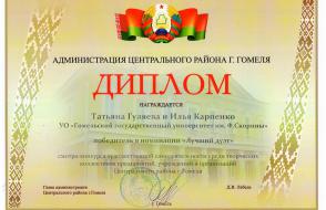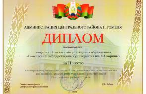 В общем зачете среди учреждений образования второе место разделили Гомельский государственный университет им. Ф.Скорины и Гомельский государственный аграрно-экономический колледж.