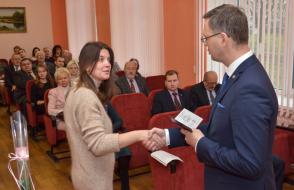 За многолетний труд по подготовке квалифицированных специалистов и в связи с юбилейными датами Почетные грамоты университета получили восемь преподавателей и сотрудников вуза, Почетной грамоты управления спорта и туризма Гомельского облисполкома был удостоен доцент кафедры спортивных дисциплин М.В. Коняхин. Дипломы кандидата наук были вручены ассистенту кафедры психологии А.А. Крутолевич, старшему преподавателю кафедры политологии и социологии М.Я. Тишкевич, старшему преподавателю кафедры физического воспитания и спорта Е.В. Осипенко. Аттестат доцента получил заместитель декана заочного факультета Т.В. Бородич.