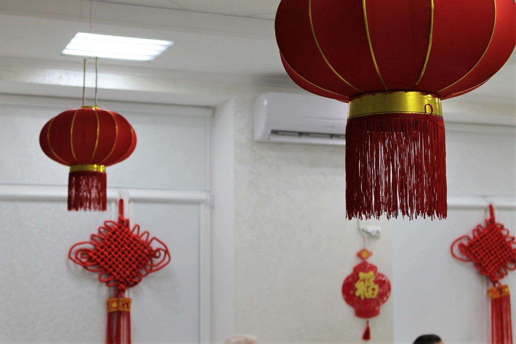 节日的气氛还来自装饰灯,彩球和鞭炮,使进入大厅的每个人都沉浸在东方的世界中。