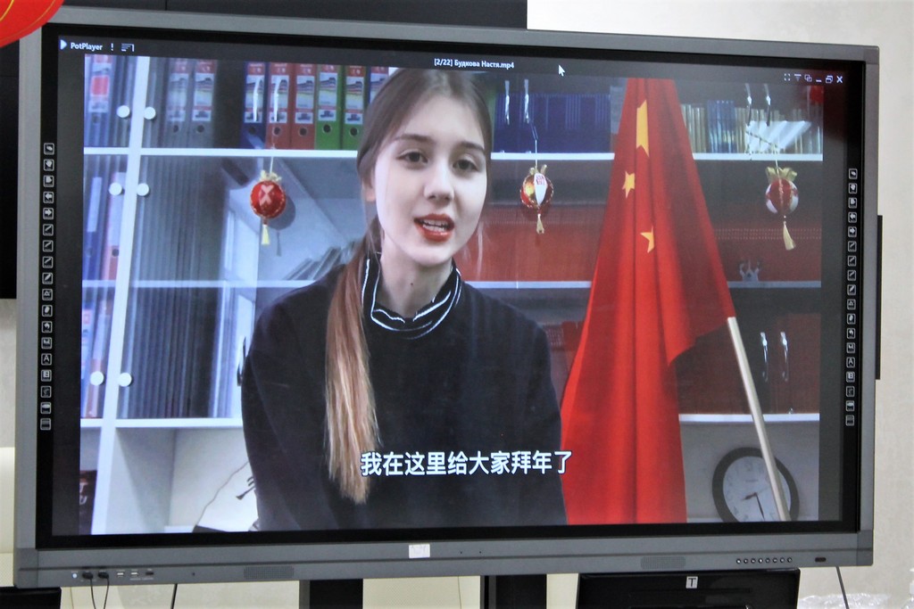 向所有客人展示了有关新年习俗的短片。例如,有必要穿上干净的衣服来庆祝春节,这样,全年就会有财富。烟火,它应该听起来尽可能大声,以吓跑所有邪灵;关于红色,象征着幸福和繁荣。为学校,体育馆,导师的特殊课程的学生提供的视频问候成为一种令人愉快的礼物。