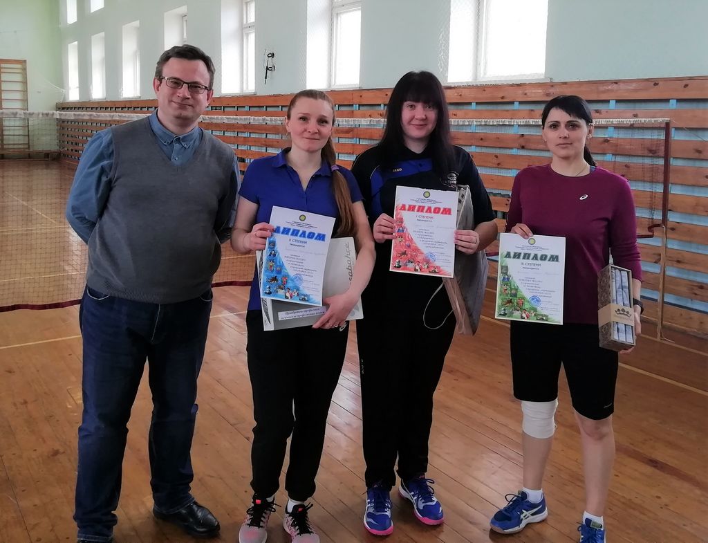 羽毛球(女子)。第一名-远程教育和大学预科学院Sedaya O.A.,第二名-远程教育和大学预科学院Zakrevskaya E.A.,第三名-体育与体育系Kostyrko M.F.