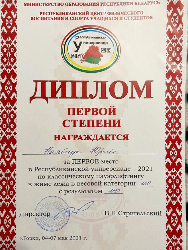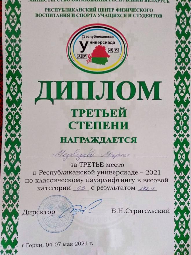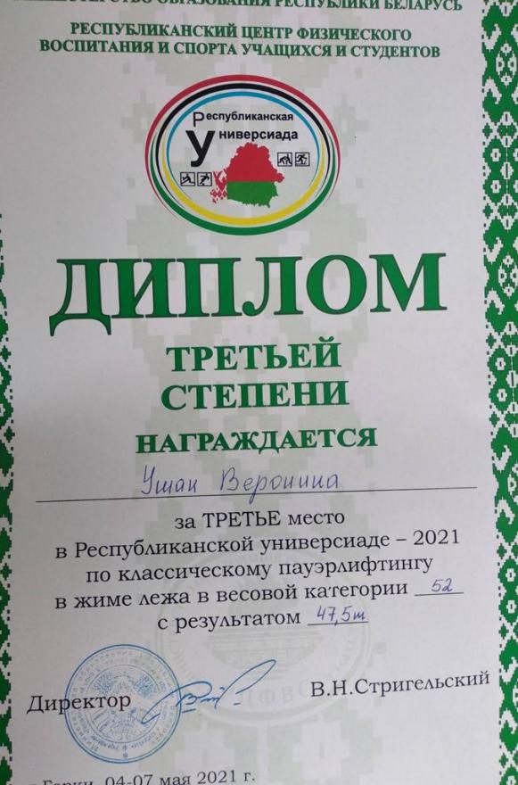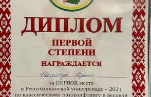 5月4日至7日,共和党世界大学生运动会举重比赛的决赛在白俄罗斯国家农业科学院体育基地在高尔基镇举行。