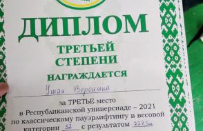 铁人三项赛的金牌颁发给了GSU Igor Zotov(66公斤)和Yuri Nayaychuk(120公斤)的函授学院的学生。铜牌得主是Veronika Ushak(52公斤)和Maria Medvedeva(63公斤)。