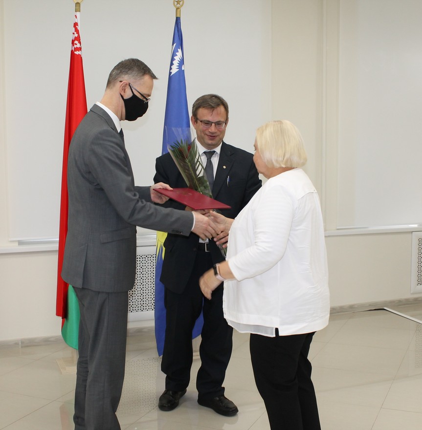 议程上的第二个是提名国家奖项候选人的问题。研究副校长、技术科学博士、Oleg Mikhailovich Demidenko 教授获得“白俄罗斯共和国荣誉科学家”称号和 Viktor Monakhov 物理和数学科学博士、“For劳动功绩”被考虑。 Rogachev Alexander Vladimirovich、Selkin Mikhail Vasilievich、Kruk Andrey Viktorovich、Skiba Alexander Nikolaevich 就候选人发表了讲话。会议一致通过了集体协议的修正案,并同意奥列格·米哈伊洛维奇和维克多·斯捷潘诺维奇获得国家奖项的提名。