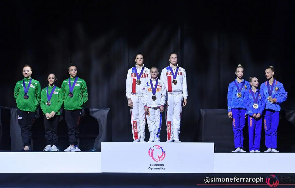 作为女子三驾马车的一部分,Christina Lishova、Anna Katsubo 和 Daria Ivanyutenko 在平衡练习中获得第三名。 Christina 和 Daria 是我们大学体育学院的学生。