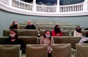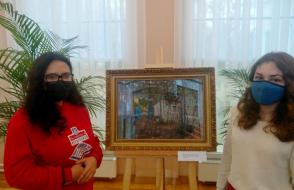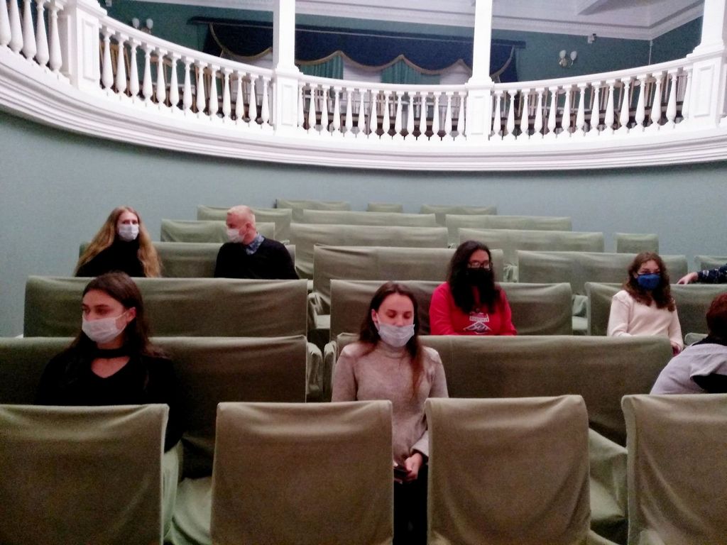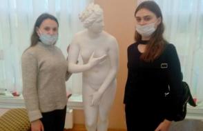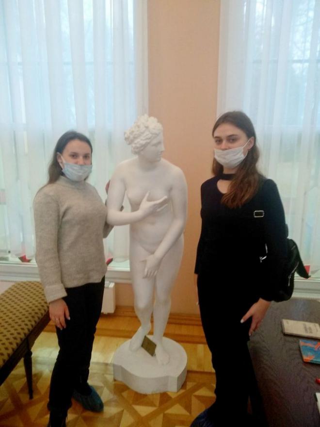 10 月 28 日,语言学院的学生与院长 Elena Poluyan 在 Galina Grigorievna Nechaeva 图形和绘画作品展览开幕式上参观了 Rumyantsevs 和 Paskevichs 的宫殿。