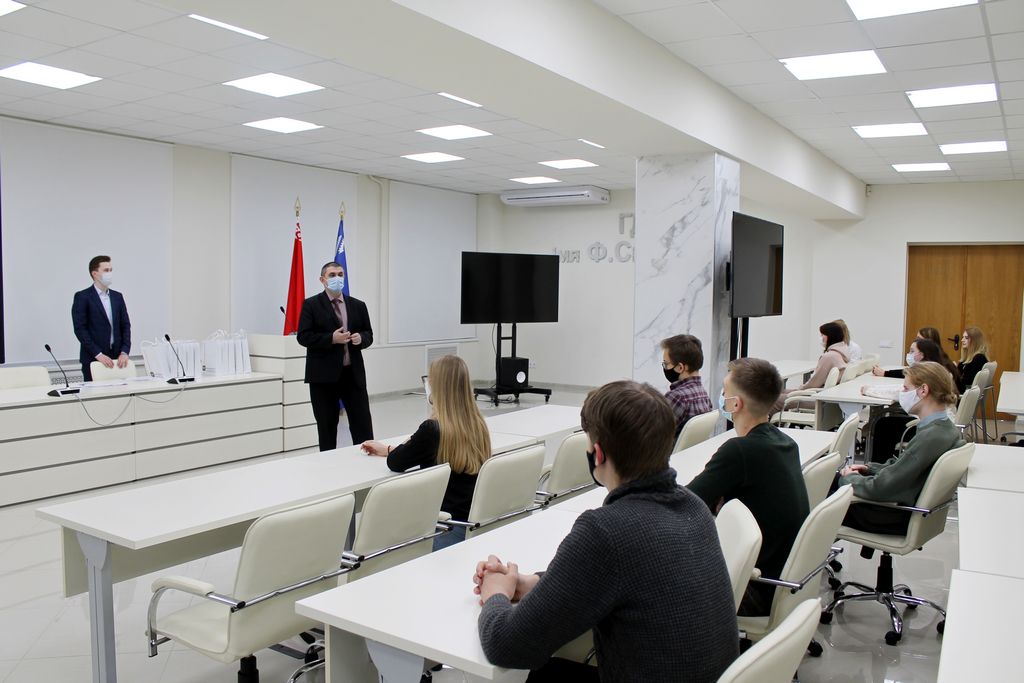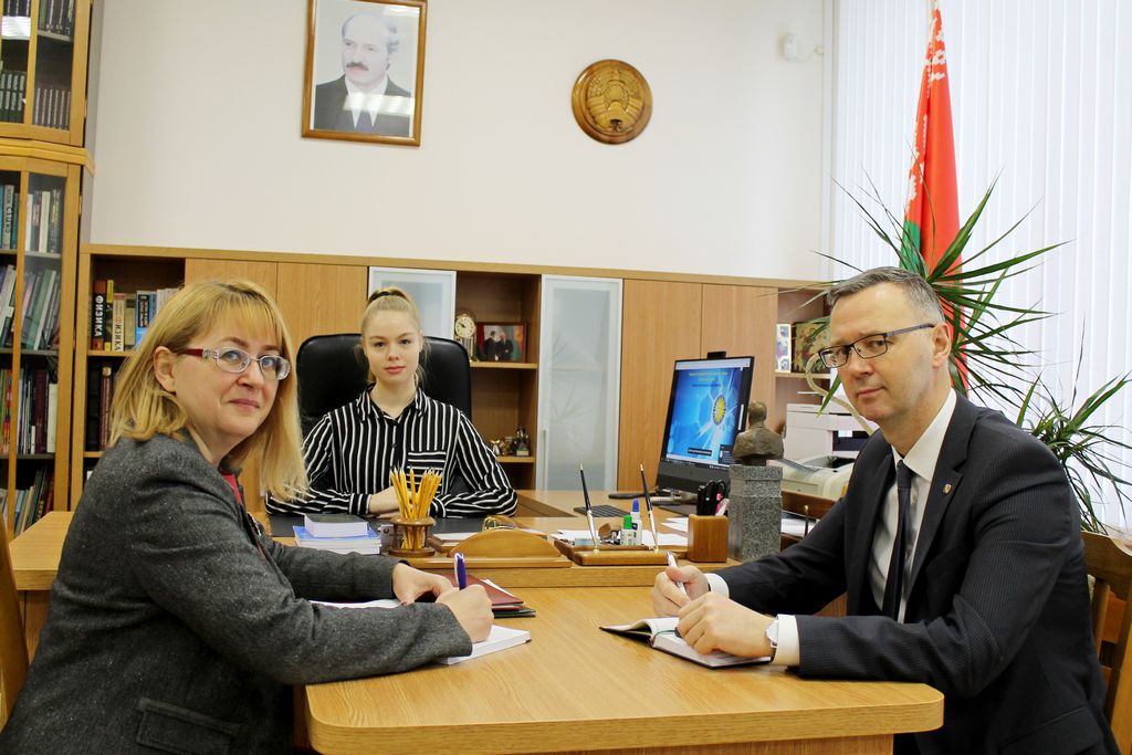 学生会副主席尼娜·阿尔达库什金娜与我校白俄罗斯共和青年联盟主要组织秘书玛丽亚·尤尔科娃在共和学生委员会框架内为学生青年机构代表举行了个人招待会白俄罗斯共和青年联盟中央委员会。值得注意的是,在我校的基础上,在共和国首次开展了实地联合学生接待工作。