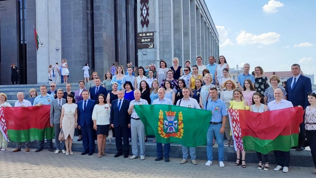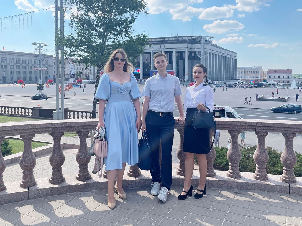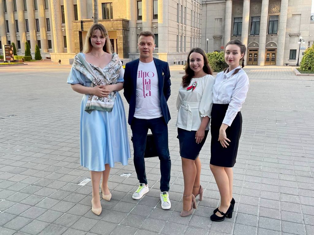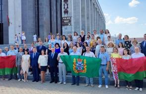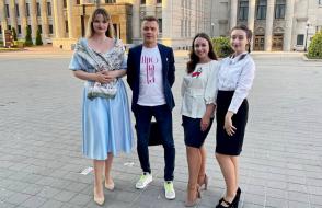 由戈梅利地区执行委员会主席伊万克鲁普科率领的戈梅利地区代表团还包括 F. Skorina 州立大学的代表:物理和 IT 学院的二年级学生 Sergey Sakovsky,大学三年级的学生法学院 Anastasia Kuznetsova 和生物学院一年级学生 Elena Yurkova。