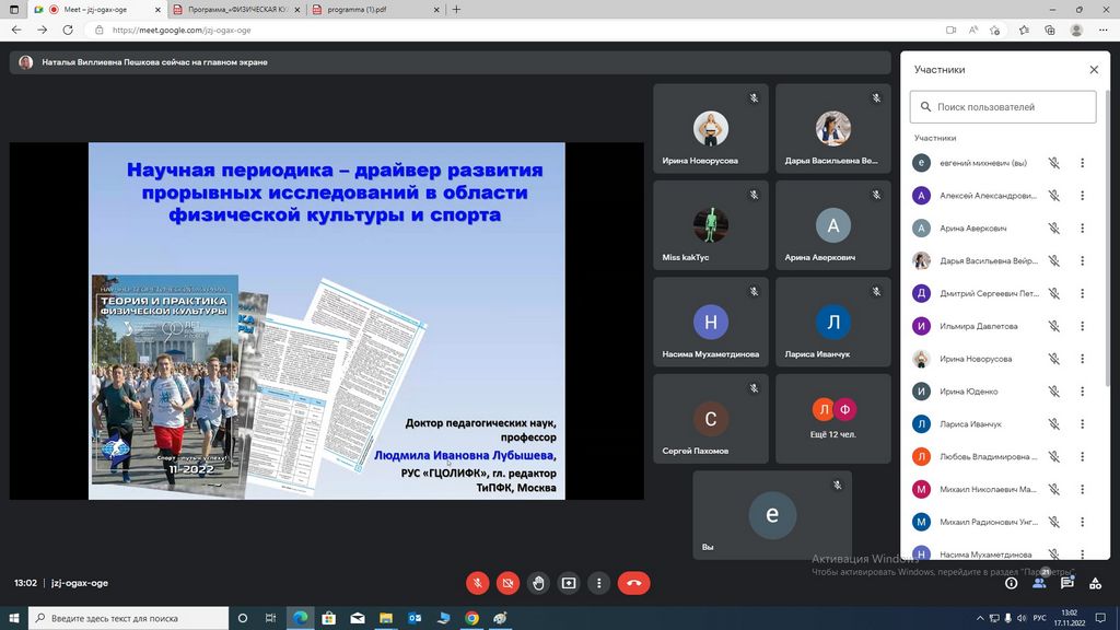 作为苏尔古特会议的一部分,组织了一个讨论平台:“科学期刊——体育文化和体育领域突破性研究发展的驱动力”(主持人:Lubysheva L.I.,教育科学博士,俄罗斯大学教授)运动“GTSOLIFK”),以及学生科学报告竞赛。