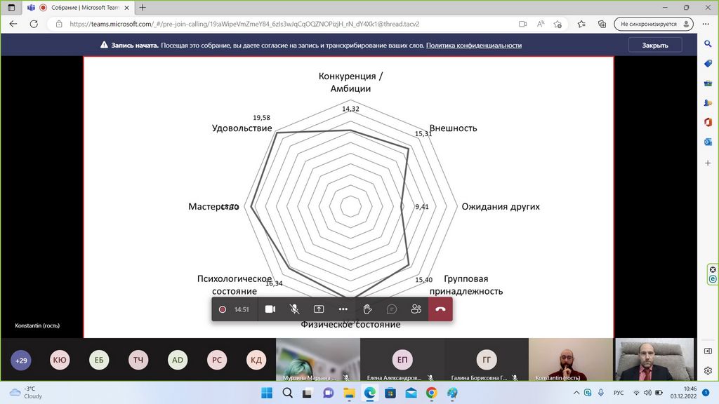 会议围绕运动员竞争力的心理因素和运动员竞争力的资源:跨学科分析两个方向展开。 作为活动的一部分,康斯坦丁·博查弗 (Konstantin Bochaver) 组织了在线大师班“运动心理诊断学的新进展”。