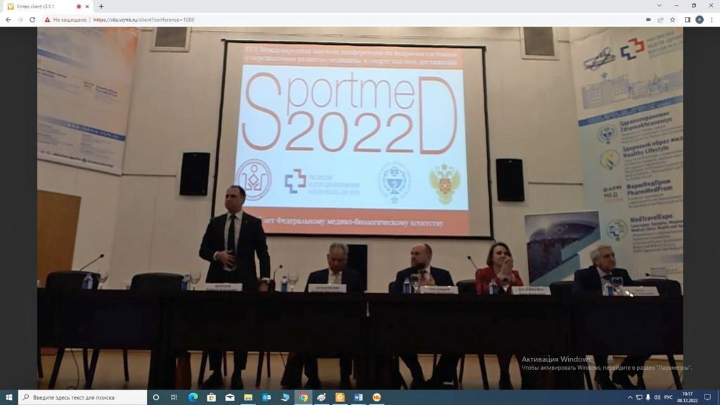 继续积极开展体育科学领域的国际合作,我校体育学院再次作为协办方和参与者参加第十七届高性能运动医学发展现状与展望国际科学会议“SporMed-2022”和“俄罗斯健康周 - 2022”论坛于 12 月 8 日至 9 日在俄罗斯联邦首都举行。
