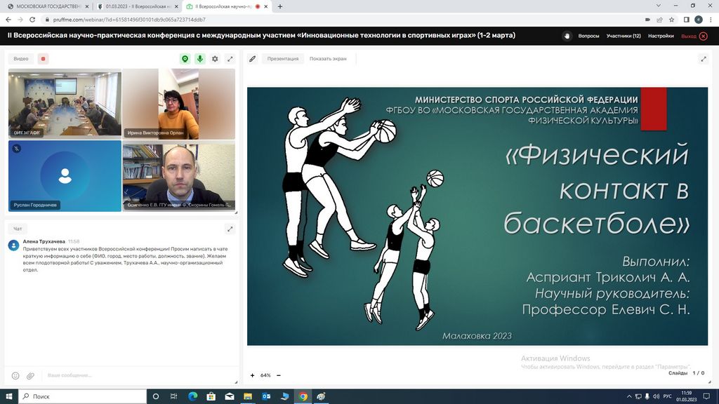 3 月 1 日至 2 日,“以 F. Skorina 命名的戈梅利国立大学”体育运动理论与方法系作为共同组织者和积极参与者参加了第二届全俄科学与实践会议,国际参与“体育比赛中的创新技术”,献给教育科学候选人 Vladimir Petrovich Cheremisin 教授(俄罗斯马拉霍夫卡)。