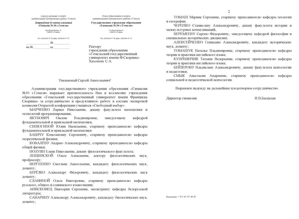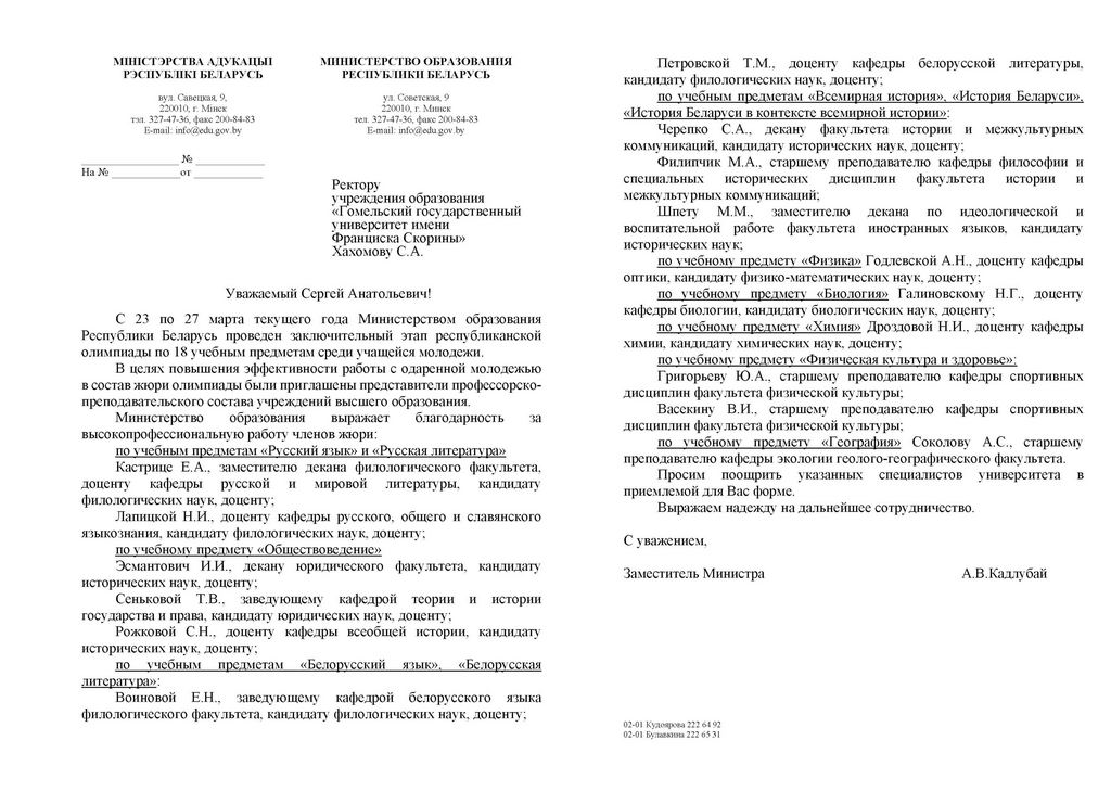 Благодарность Гомельского областного института развития образования