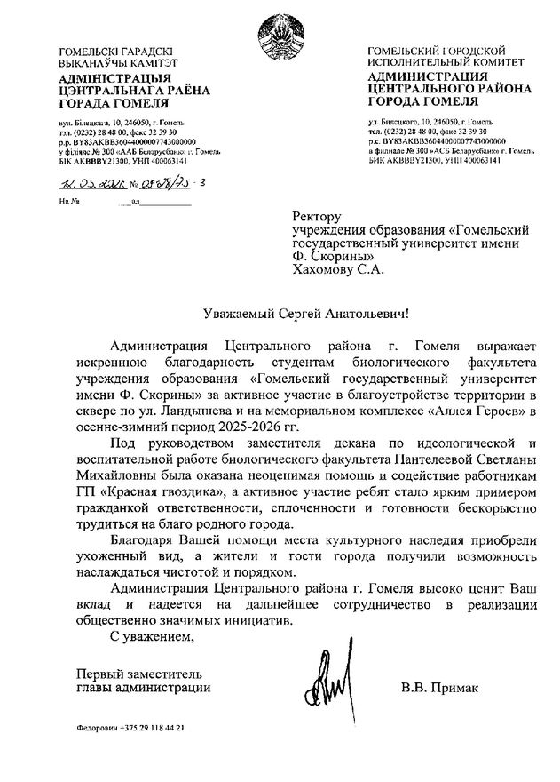 • Благодарность за активное участие в благоустройстве мемориального комплекса "Аллея Героев" (Благодарность Пантелеевой С.М.)