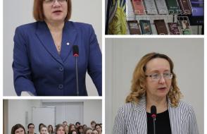 Декан факультета иностранных языков Елена Владимировна Сажина, кандидат филологических наук, доцент, прочитала лекцию на тему «…