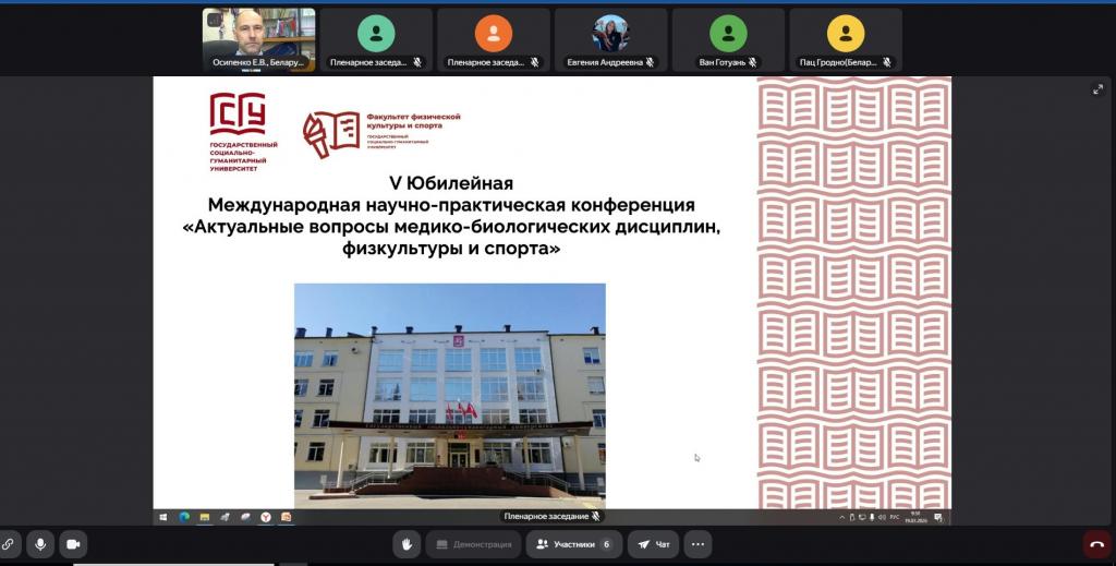 На пленарном заседании в Коломне прозвучали доклады ведущих специалистов из России, Беларуси и Армении. Участники обсудили физиологические маркеры в спорте высших достижений (проф. Н. Н. Захарьева), инновационные методики физического воспитания (доц. Н. В. Пац). Большой резонанс вызвали выступления, посвященные патриотическому воспитанию (Е. А. Дубинина), формированию инклюзивной компетентности (доц. Е. Д. Митусова) и психологической подготовке спортсменов (Д. В. Никифоров). Медицинская секция была представлена исследованиями миокардита у спортсменов (доц. Л. А. Симонян) и экспериментальными работами по биохимии (З. Х. Паронян). Международный аспект заседанию придал доклад заведующего кафедрой теории и методики физической культуры ГГУ имени Ф. Скорины Евгения Осипенко, посвященный цифровым технологиям в образовании, и метаанализ аспиранта Ван Готуаня о влиянии тайцзицюань на пожилых людей.