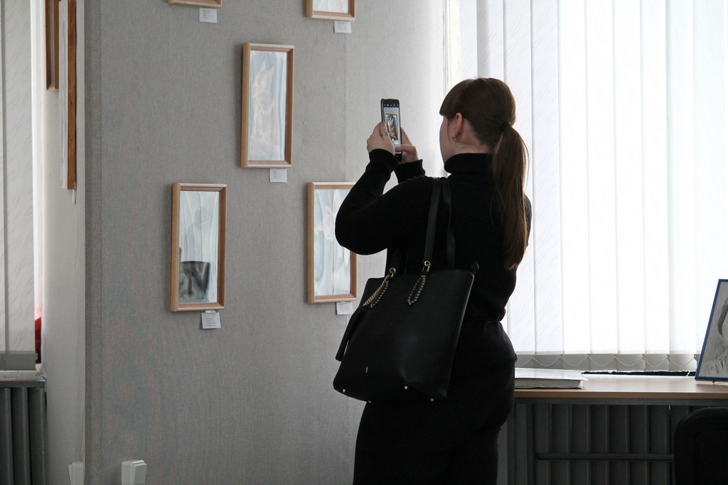 На открытии выставки был показан творческий номер «Миниатюра для жизни» в исполнении мамы художницы Елены Романовой, а ее авторские стихи органично дополнили экспозицию картин.