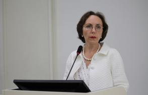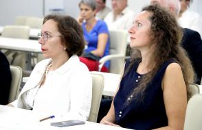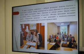 С отчетом о зарубежной стажировке выступила декан факультета иностранных языков Елена Сажина.