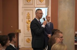 В своем выступлении Владимир Мединский акцентировал внимание на прикладном характере исторической науки. «Не зная своего прошлого, невозможно построить будущее», – отметил российский гость. Отвечая на вопрос декана факультета истории и межкультурных коммуникаций нашего университета Станислава Черепко, Владимир Ростиславович отметил положительную динамику взаимодействия белорусских и российских историков в развитии исторической науки и сохранении многовековой совместной истории наших народов. Отвечая на вопрос старшего преподавателя кафедры истории Беларуси Станислава Тыкуна, Владимир Мединский подчеркнул важность совместных усилий в выпуске сбалансированной, научно выверенной учебной литературы.