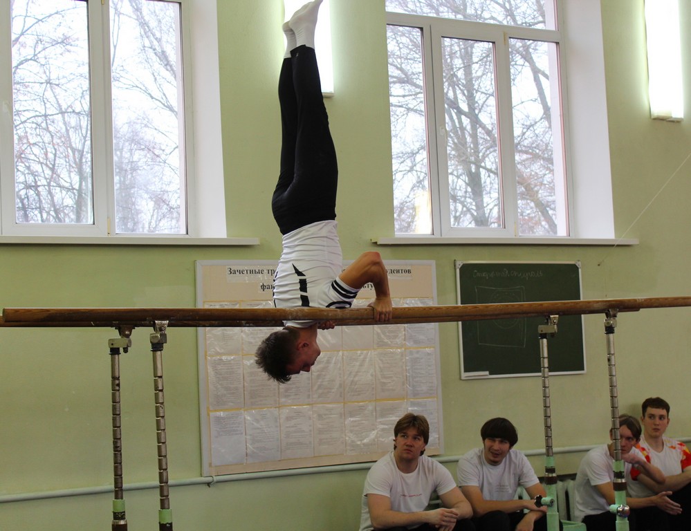В канун новогодних праздников прошло традиционное первенство ГГУ имени Ф. Скорины по спортивной гимнастике, организованное кафедрой спортивных дисциплин. Этой традиции уже более семидесяти лет. Для выступления на данных соревнованиях приглашаются все желающие из числа студентов университета, имеющих соответствующую подготовку и по состоянию здоровья не имеющих противопоказаний.