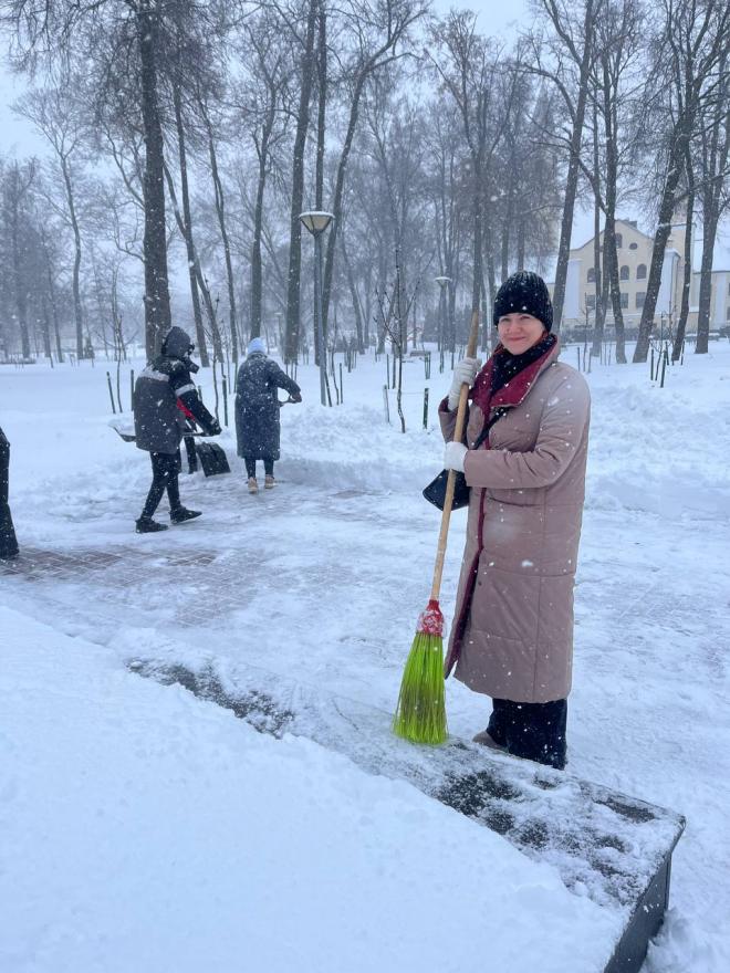 Коллектив Гомельского государственного университета имени Ф. Скорины принимает активное участие в работах по уборке снега. Вооружившись лопатами, студенты, преподаватели и сотрудники университета совместными усилиями расчищают территорию, прилегающую к учебным корпусам университета и общежитий, обрабатывают тротуары противогололедными средствами.