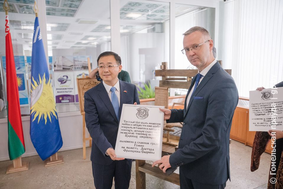 В рамках визита в Гомельскую область Чрезвычайный и Полномочный Посол КНР Чжан Вэньчуань провел рабочую встречу с руководством региона, а также посетил ГГУ имени Ф. Скорины, где ознакомился с образовательным потенциалом и научно-исследовательской базой вуза.