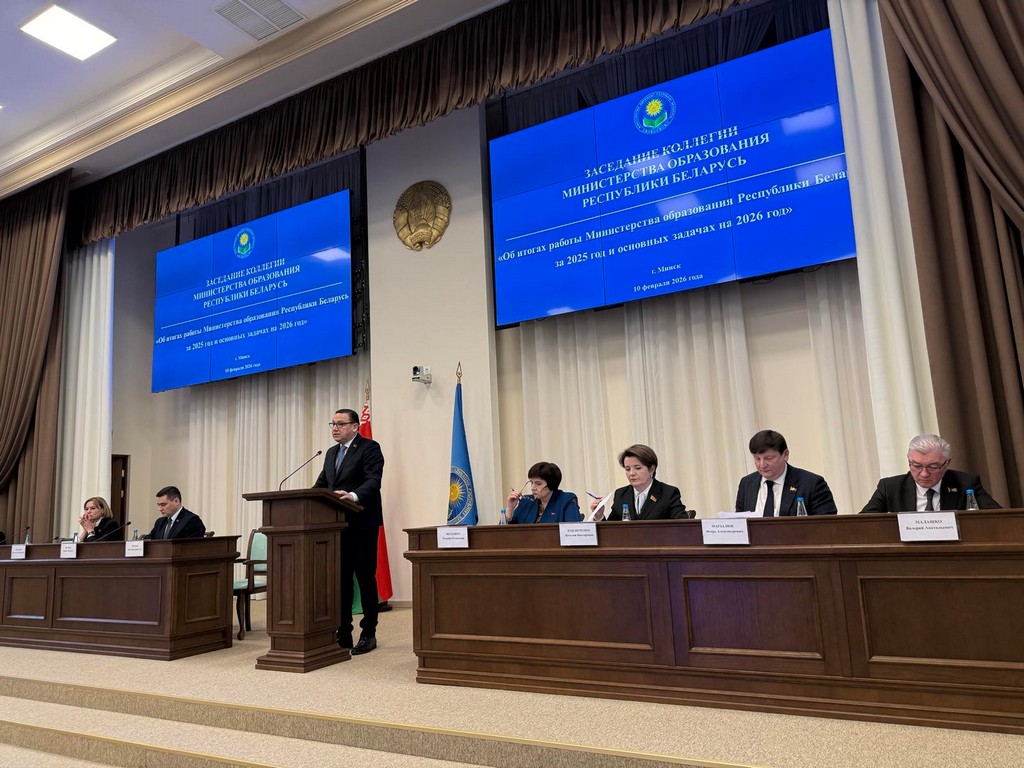 Ректор Гомельского государственного университета имени Ф. Скорины Сергей Хахомов принял участие в итоговой коллегии Министерства образования Республики Беларусь. В ходе заседания были заслушаны выступления руководителей регионов и представителей педагогического сообщества, обсуждены ключевые стратегические задачи развития системы образования на 2026 год, а также состоялась церемония награждения лучших учреждений и коллективов отрасли.