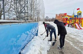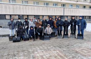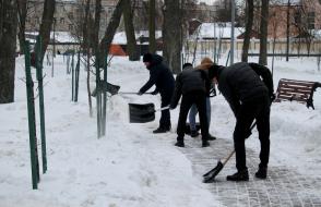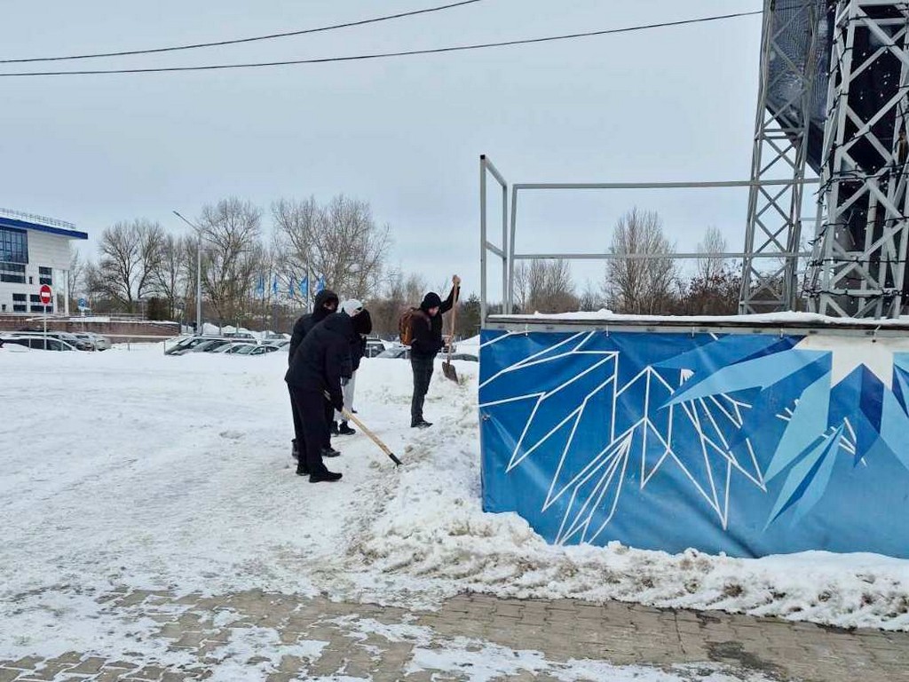 Кроме того, волонтерская помощь была оказана в районе Ледового дворца. Здесь ребята убрали снег на прилегающей территории, расчистили подходы и пешеходные зоны.
