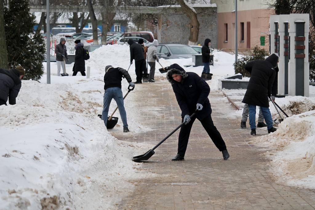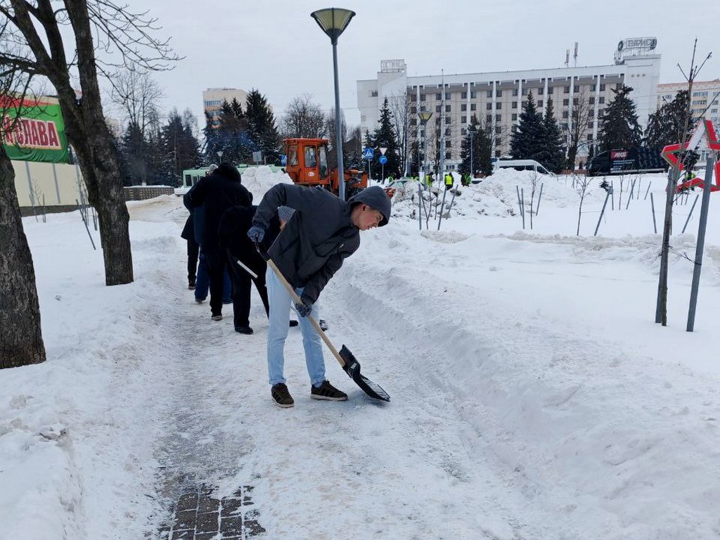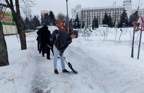 Продолжается декадник по уборке снега. Студенты ГГУ активно устраняют последствия снегопада не только на территории университета, но и за его пределами. Ребята помогли расчистить пешеходные зоны и общественные пространства города.