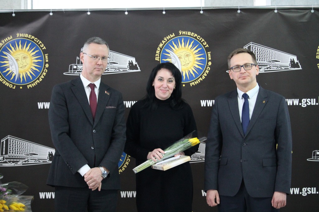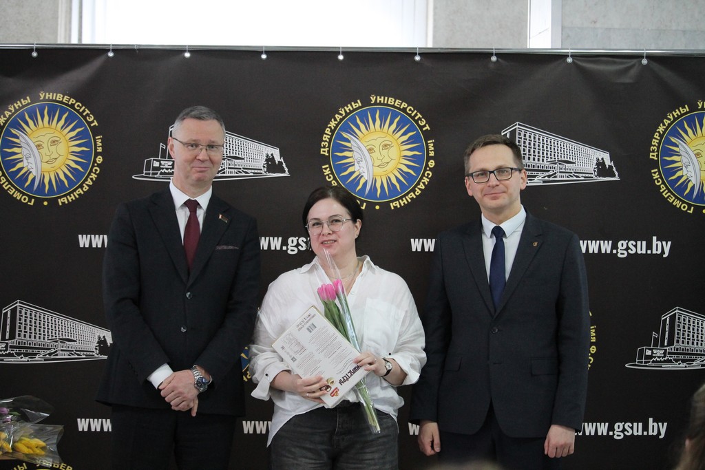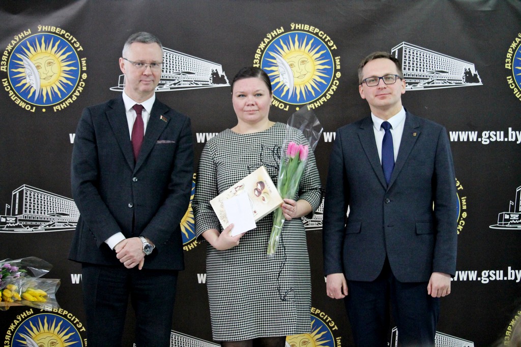 Накануне самого светлого и по-настоящему весеннего праздника – Дня женщин – в Гомельском государственном университете имени Франциска Скорины царила особая атмосфера тепла, улыбок и искренних поздравлений. В этот день девушки и женщины университета принимали слова признательности и добрые пожелания. Руководство и профсоюзный комитет выразили им благодарность за ту атмосферу уюта, радушия и гармонии, которую они ежедневно создают в стенах родного вуза, наполняя его жизнью, вдохновением и душевным теплом.