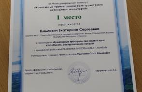 Екатерина Климович - победитель III Международного конкурса «Креативный туризм: реализация туристского потенциала территорий»