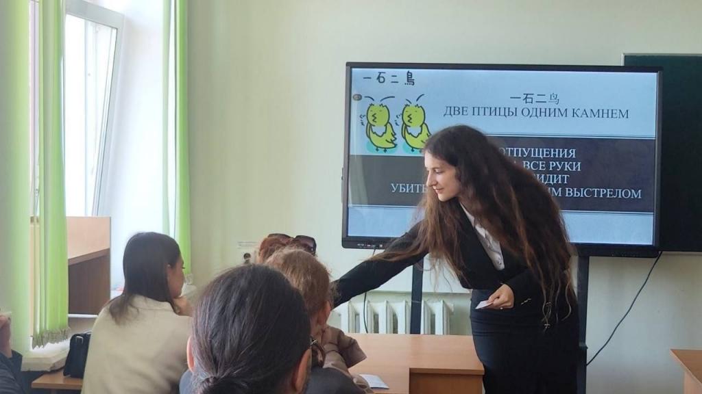 Старший преподаватель кафедры русского, общего и славянского языкознания Ангелина Аксенчикова-Бирюкова подготовила для учащихся интеллектуальную мини-игру по сопоставительной фразеологии русского и китайского языков.