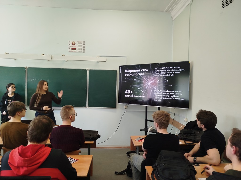 25 марта на факультете математики и технологий программирования прошел семинар «Инновайс – путь к успеху» для студентов третьего курса. Семинар провели представители IT-компании «Фабрика инноваций и решений» – HR-manager компании Виталий Ковальчук, рекрутер отдела IT-HUB Юлия Терешкова, тестировщик Галина Шеванова, специалист отдела Big Data Марина Скумина, front-end разработчик Елизавета Пригожая.