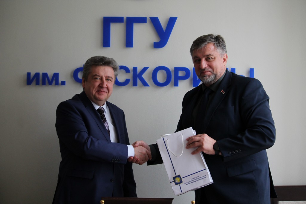 В Гомельский государственный университет имени Франциска Скорины с официальным визитом прибыл главный проектный менеджер Управления русских центров и организации мероприятий фонда «Русский мир» Сергей Александрович Улитин. Цель визита – обсуждение перспектив развития сотрудничества ГГУ имени Ф. Скорины с фондом «Русский мир», подписание документов о безвозмездной передаче методической литературы по РКИ нашему университету.