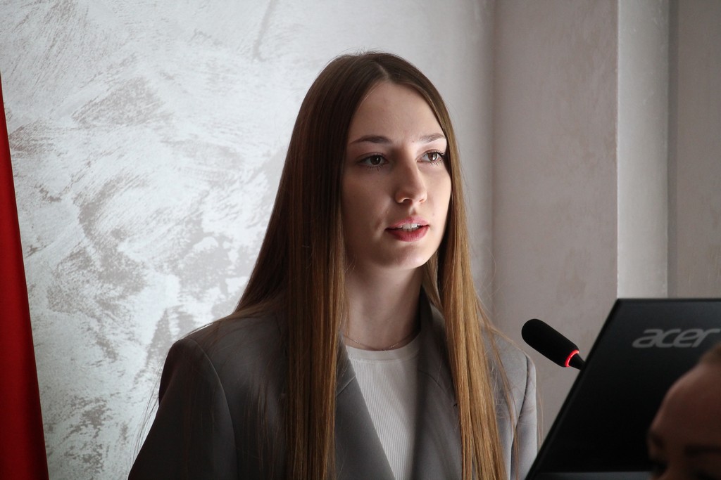 – Елизавета Палевичева, студентка 2 курса специальности «Лингвистическое обеспечение МКК» выступила с сообщением на тему «История становления национальной государственной символики»;