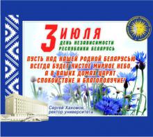 Пусть над нашей родной Беларусью всегда будет чистое мирное небо, а в ваших домах царят спокойствие и благополучие! Сергей Хахомов, ректор университета