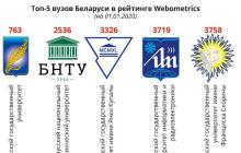 Топ-5 вузов Беларуси в рейтинге Webometrics (на 1.01.2020):